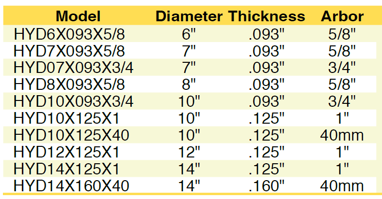 Available in 6″ to 14″ sizes to fit Clean-CutsTM, Aeroquip, Custom Crimp, Gates, Goodyear, Imperial Eastman, Parker, Stratoflex, Toledo, and Weatherhead saws.